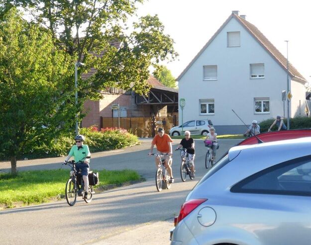 wird immer gerne angenommen. Trotz brutaler Schwüle fanden sich ca. 20 Radlerinnen und Radler am Sammelpunkt über dem Erlich ein. Kurz nach 18.00 Uhr startete unser Radelführer Rainer mit der Gruppe in Richtung Hochstetter Sportplatz hinein in den Wald. Auch dort war die Hitze zu spüren, aber es ging eisern weiter, an der Heglach entlang über Wiesen und Felder nach Graben und dort in Richtung Liedolsheim und dann auf die Zielgerade Richtung Hochstetten. Dort wurde zum Einkehrschwung in den Biergarten beim Turnhallenrestaurant des TV Hochstetten angesetzt.