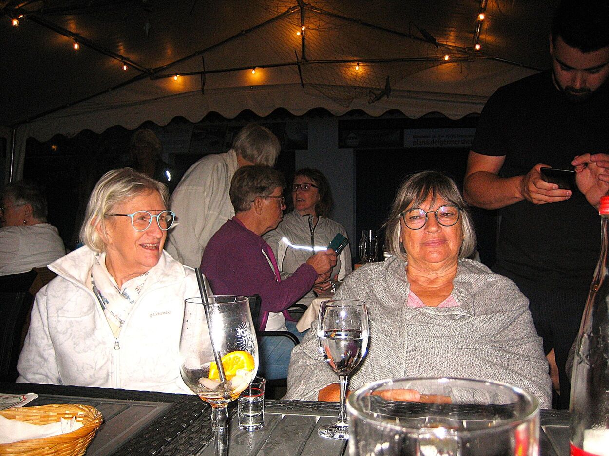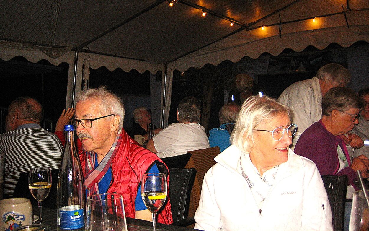 Wir fanden Platz unter einem kleinen Zelt, wo uns schon 14 weitere Sängerinnen und Sänger erwarteten. Es wurde ein schöner gemütlicher Abend mit angenehmen Gesprächen, gutem Essen und der Vorfreude auf die erste Singstunde nach den Ferien.