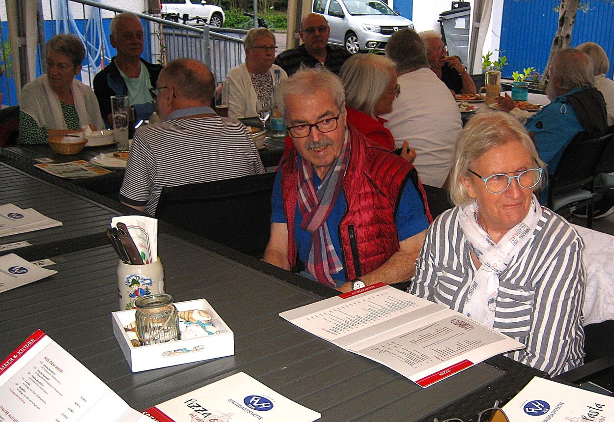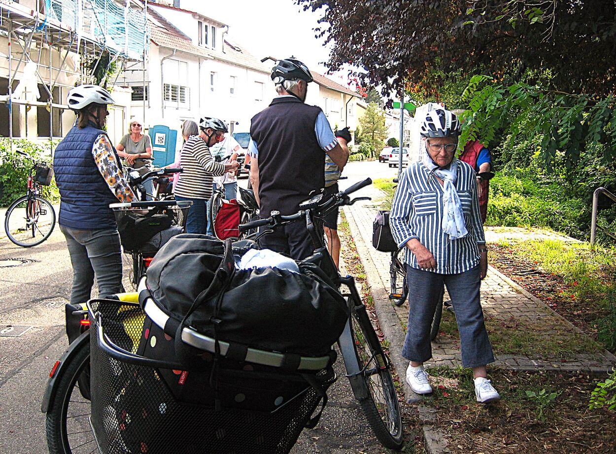 Am letzten Freitag im August startete unsere zweite Ferienradtour. Sie führte uns bei gemütlichem Tempo durch den Hardtwald. Zunächst Richtung Fußballplatz Linkenheim, vorbei am KIT-Campus Nord nach Friedrichstal/Schöneichenjagen. Dann ein Stück die Friedrichstaler Allee nordwärts, an der Bahnlinie entlang um dann über den Reiterplatz via „Altlielser Weg“ unserem Ziel dem FVH Clubhaus zu Gürsel entgegen. Bei unserer 12-köpfigen Radelgruppe befanden sich auch zwei „Heimatforscher“, die plötzlich abhanden kamen. Sie gingen, obwohl am Ende der Gruppe fahrend, ihrem Hobby nach und begutachteten den alten Römerweg, die zugehörige Infotafel und dokumentierten diese mit Fotos. Dadurch verloren sie den Anschluss. Aber Heimatforscher wären keine Heimatforscher, wären sie nicht auch mit den heimatlichen Waldwegen vertraut. Die Gruppe indes wartete auf die Beiden, die jedoch eine andere Route nahmen. Durch diese ungewollte Pause von etwa zehn Minuten bekam das „Hauptfeld“ noch eine kleine Dusche ab, denn es begann zu regnen.