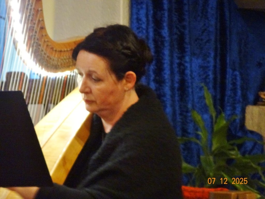 Sonntags am 7. Dezember traf sich unser Chor bereits um 15.15 Uhr in der katholischen Kirche zur Stellprobe und zum Einsingen vor unserem Konzert. Unser Dirigent Aldo war etwas angeschlagen und wir fröstelten alle ein wenig in der kühlen Kirche, vielleicht auch ein wenig vor Aufregung, ob wohl alles klappen würde und ob genügend Besucher kämen. Die Sorge war unbegründet, die Besucher kamen und offensichtlich gefiel auch unsere Liedauswahl. Sie bestand aus internationalen Weihnachtsliedern und stimmungsvollem Harfenspiel unserer Sängerin Silke Stober. Sie hatte zwei Stücke ausgesucht, die gut in die Vorweihnachtszeit passten – ein Klangerlebnis der besonderen Art. Bei unseren Liedern waren auch weltliche Songs dabei wie "Why we sing", bei der unsere junge Solistin Kristin, unser Tenor Harald und unser Bass Hartmut brillierten und auch "Cantar" von Jay Althouse, das die Freude am Singen bestätigte. Hanne Hallers "Vater unser" und Bernd Stallmanns "Vom Flügel eines Engels berührt" fügten sich gut in die vorweihnachtliche Stimmung ein.