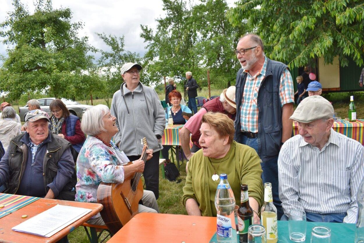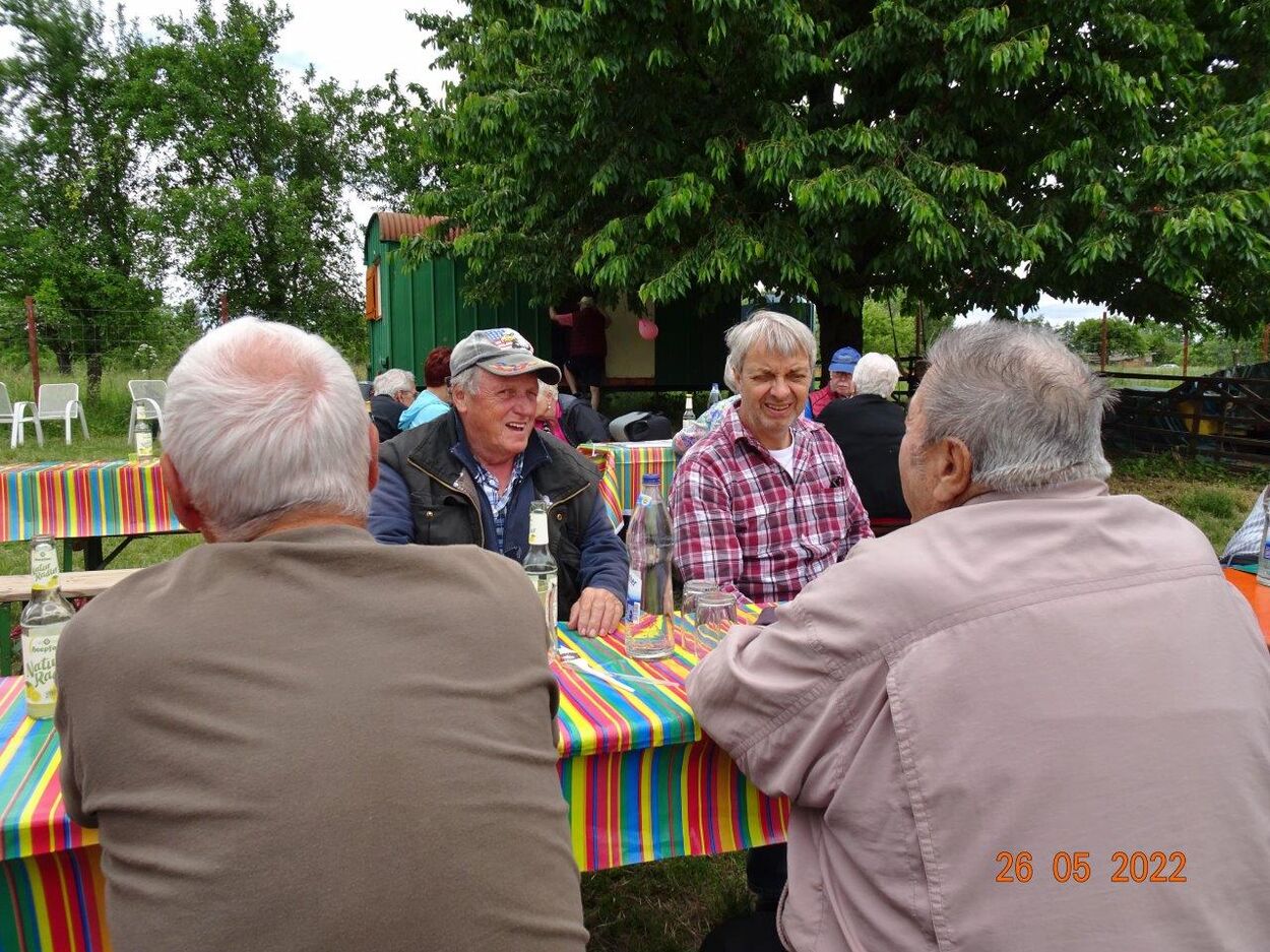 Am Vatertag nutzten einige Sängerinnen und Sänger das Angebot von Rainer und trafen sich vor dem Koppelfest zu einer kleinen Radtour, um pünktlich vor Ort einzutreffen. Dort waren die Vorbereitungen schon auf vollen Touren und mit fleißiger Unterstützung war alles optimal gerichtet. So konnten die eingeladenen Gäste auf einem wunderbaren Fleckchen Erde diesen Tag genießen. Der Wettergott spielte auch mit und bei angenehmen Temperaturen konnten wir es im Freien gut aushalten und der riesige Kirschbaum hielt schon süße Früchte zum Naschen parat. Christa und Manfred Lang hatten aus dankbarem Anlass diese Einladung ausgerichtet und wir danken der ganzen Familie Lang für die Gastfreundschaft und die supergute Verköstigung. Den Grillmeistern hier ein besonderes Lob und auch den Sängerinnen, die mit feinen Salaten und Kuchen das Buffet bereicherten. Auch unseren musikalisch Aktiven ein herzliches Danke!