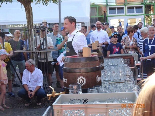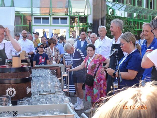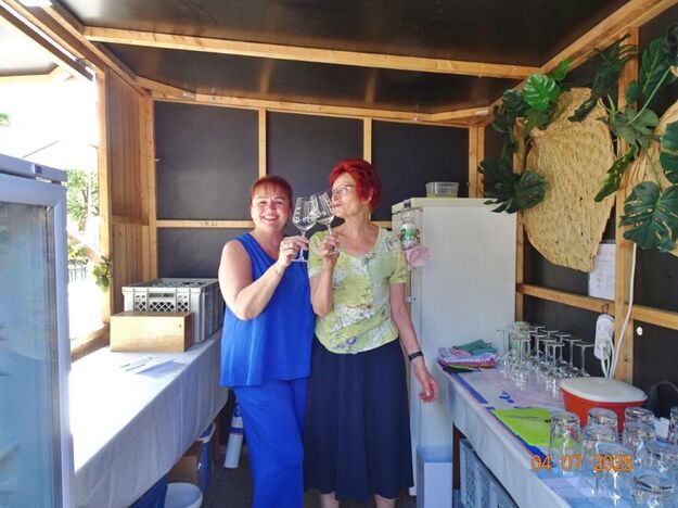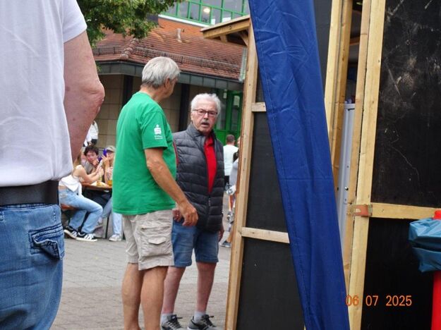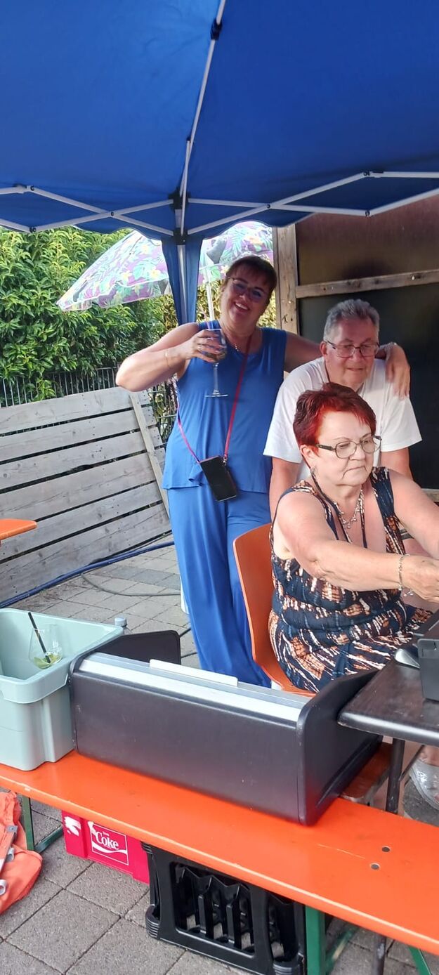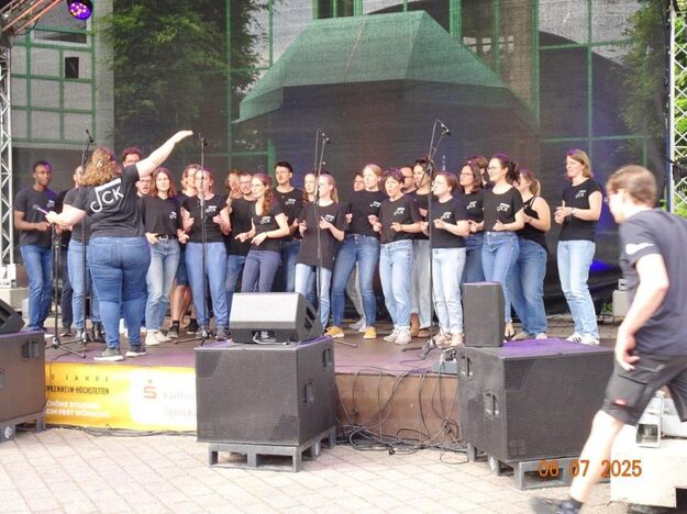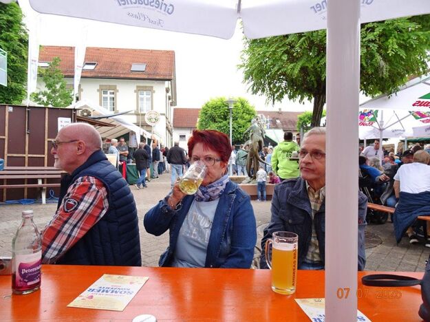 Unser Gemeindefusionsfest begann mit nahezu tropischen Temperaturen. Freitags, wenige Stunden vor Festbeginn, wurden noch fleißig unsere Hütten bestückt, nachdem Tage zuvor die Maultaschen-Produktion auf Hochtouren lief. Hier ein Danke an unsere Macher und Organisatoren Uschi und Rolf und ihre Mitstreiter. Gleichzeitig auch ein ganz herzliches Dankeschön an unseren Sponsor GLOBUS-Wiesental für die Spende. Natürlich auch danke an all unsere aktiven und passiven Mitglieder, die über die Festtage einen großartigen Dienst leisteten und unserem 1. Vorsitzenden Klaus Reinhardt, der immer rundum für Nachschub sorgte, mithilfe unseres 2. Vorsitzenden Markus Ksienzyk. Nur mit solcher Unterstützung kann das Ganze funktionieren! Um 18.00 Uhr erfolgte mit dem traditionellen Fassanstich durch unseren BGM Michael Möslang und der Begrüßung der Delegationen der Partnerschaftskommunen die feierliche Eröffnung des Festes. Und da war viel geboten, mit 3 Bühnen und vielen tollen Bands und anderen Unterhaltungsangeboten, von den Vereinen, Schulen und Ständen, die kulinarisch verwöhnten, Schaustellern und auch die Security und andere Dienste, die hier Bereitschaft hatten, nicht zu vergessen! Kurz, es war rundum für alles bestens gesorgt, um auf dem Festgelände schöne Stunden zu verbringen. Sonntags waren kühlere Temperaturen angesagt, eine richtige Wohltat nach den zwei ersten heißen Festtagen. Die von uns eingeladenen Chöre Da Capo aus Graben und der JCK vom KIT Karlsruhe waren pünktlich vor Ort, um bei unserem Bruderverein Sängerbund Linkenheim, der befreundete Chöre geladen hatte, aufzutreten. Beide Chöre sangen unter neuer Leitung und begeisterten mit modernem Liedgut das Publikum, wobei der JCK größenmäßig und stimmgewaltig beeindruckte und Lust auf sein Sommerkonzert machte. Die Stimmung vor Ort war gut und auch die Nachricht, dass gegen 18.00 Uhr unsere Maultaschen ausverkauft waren, ließ Freude aufkommen. Schade für die, die keine mehr bekamen, aber für uns das Zeichen, dass sie geschmeckt haben, wie wir auch immer wieder bestätigt bekamen. Fazit: Die Maultaschen könnten in unser Festprogramm aufgenommen werden – schaun wir mal. Der Sängermax und unsere Weinschorle waren auch der Renner, so hat sich die ganze Arbeit und Mühe gelohnt und den Verein zusammen geschweißt.