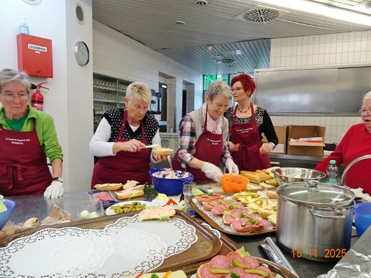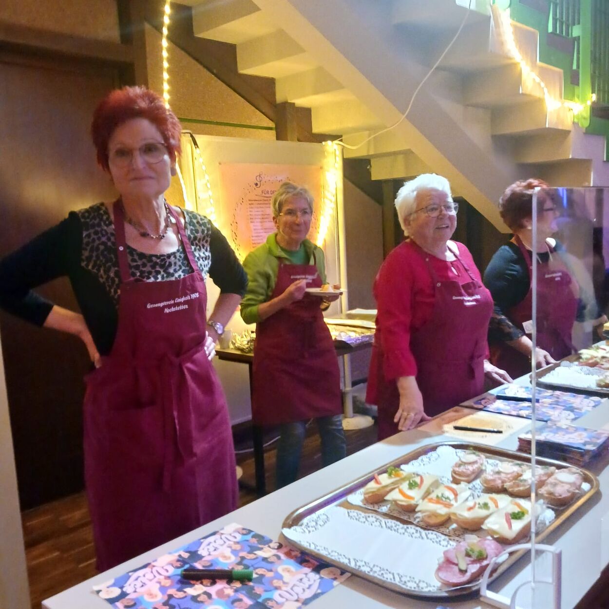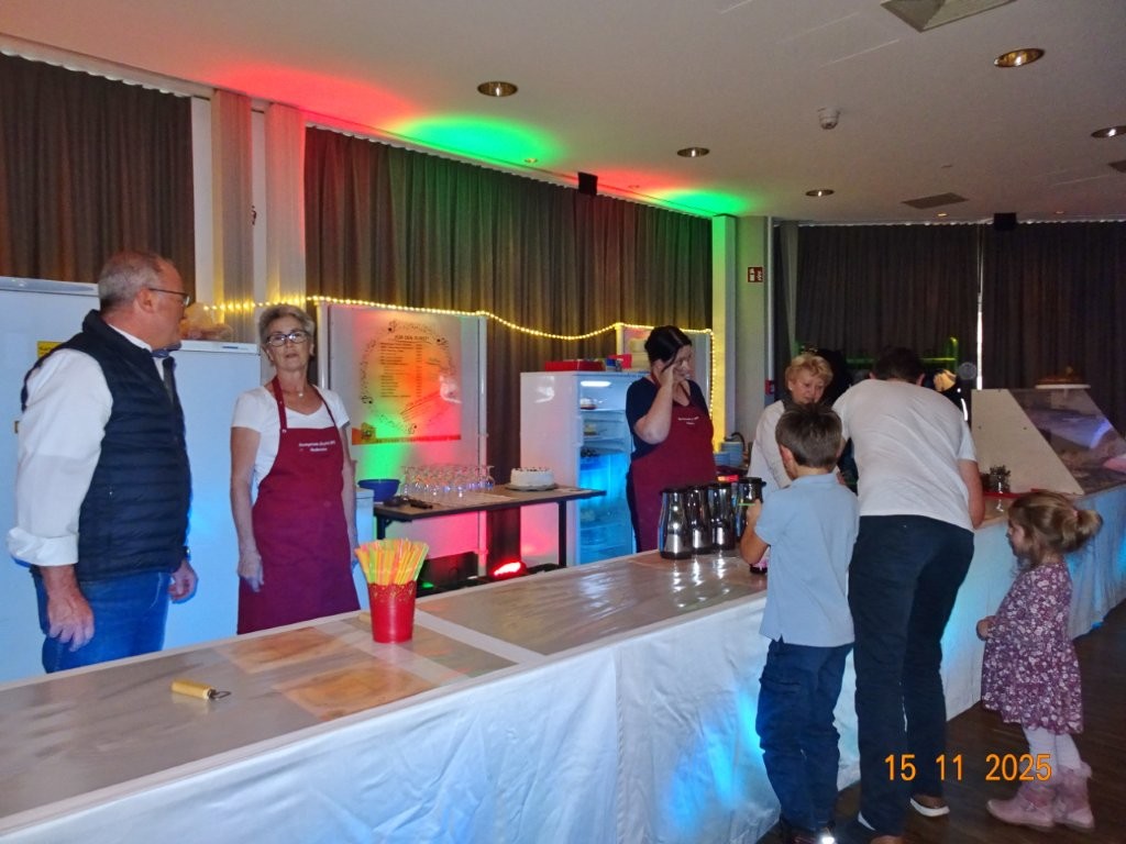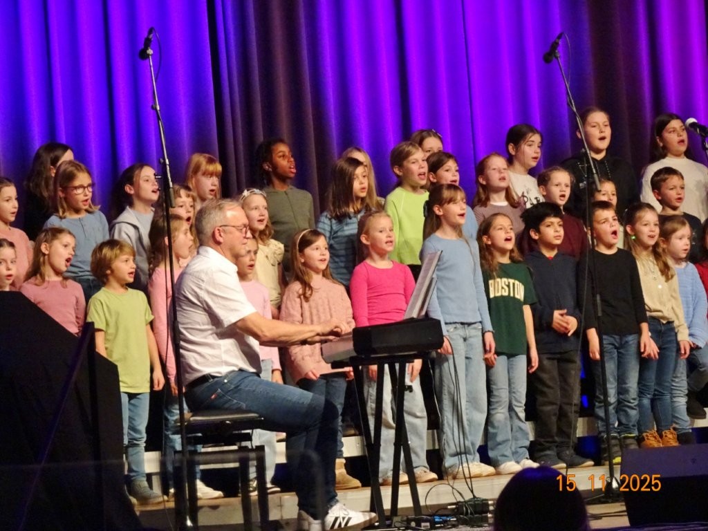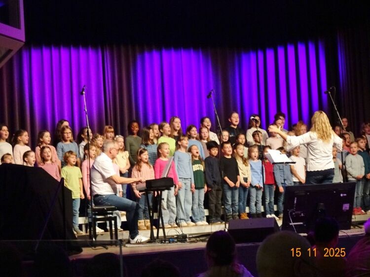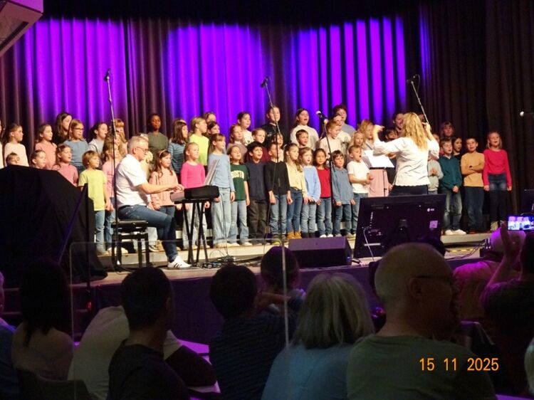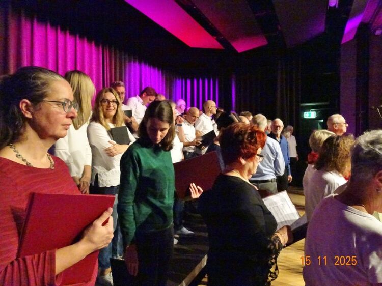 Im Vorfeld wurde fleißig geprobt, auch für ein gemeinsames Lied mit unserem Bruderverein GV-Sängerbund Linkenheim - der Miteinandertag konnte kommen. Die teilnehmenden Vereine hatten sich ins Zeug gelegt, um ein schönes Event zu bieten, voran der GV Sängerbund, der zum Miteinander geladen hatte. Freitags und samstags wurde im Bürgerhaus fleißig gewerkelt, um alles einladend zu richten. Samstags füllte sich die Kuchentheke mit leckeren Kuchen und Torten und in der Küche wurden Brötchen und Wurstsalat gerichtet, um für das leibliche Wohl der Anwesenden zu sorgen. Ab 15.00 Uhr bot die KuGel ein Programm für Kids und ab 15.30 Uhr war dann der Grundschulchor Hochstetten mit seiner Chorleiterin Frau Bamberger auf der Bühne. Sie verstand es meisterhaft, die 60 Kinder bei den Liedvorträgen zu führen und deren Begeisterung war förmlich zu spüren – bravo! Gegen 18.00 Uhr waren dann unsere zwei Vereine mit insgesamt vier Chören zu hören. Der Frauenchor des Sängerbund startete, gefolgt vom Männerchor, die sich mit modernen, überwiegend englischen Songs bestens präsentierten. Danach folgte unser Chor mit Grönemeyers „Mambo“, „Ein Lied kann eine Brücke sein“ und dann das Fusionslied zu unserem Gemeinde-Jubiläum mit dem eigens umgedichteten Text von „Solang man Träume noch leben kann“. Der Neutralität halber hat hier unser Grabener Sänger Klaus Eichsteller gedichtet – vielen Dank Klaus!