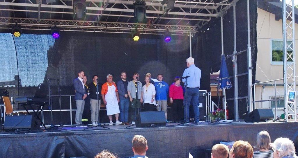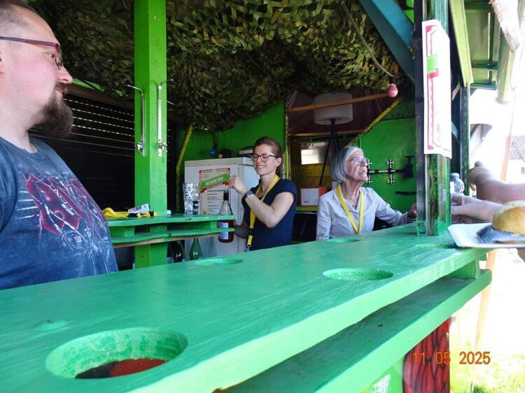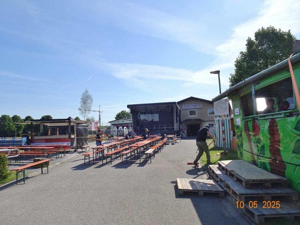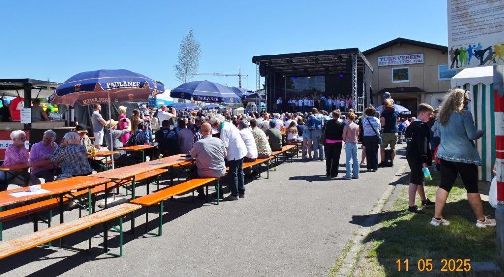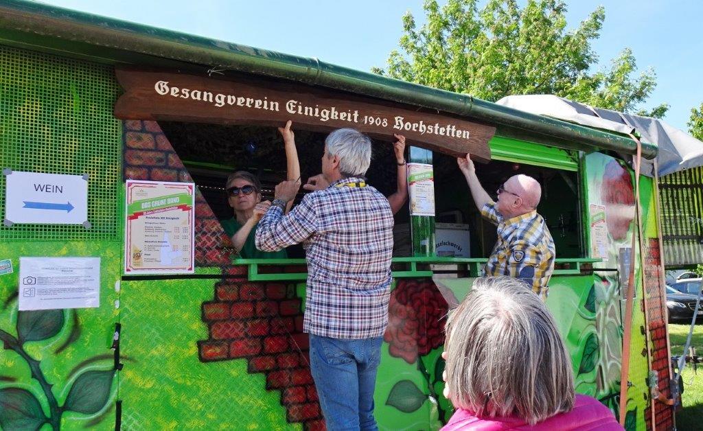 Am Samstag, 10.05. auf dem TVH-Familienfest galt es unseren Weinstand einzurichten. Dazu hatten sich viele Chormitglieder eingefunden und so klappte das wunderbar. Hier gleich ein herzliches Dankeschön an unsere ganze Helferschar, die über die Festtage für uns im Einsatz war, super toll! Danke auch an die Kuchenbäckerinnen, die damit den Kuchenverkauf vor Ort unterstützten. Sonnige Tage waren dem Fest beschert und so wurde die viele Arbeit vor, während und nach dem Fest belohnt. Riesigen Dank auch an die Macher, sie hatten sich da wirklich was einfallen lassen und die Familien fühlten sich sichtlich wohl. Bei dem vielseitigen Unterhaltungsprogramm, ob in den tollen Hüpfburgen, bei der deutschen DOG-Spiel-Meisterschaft, oder anderen Aktivitäten, jeder konnte auf dem TVH-Gelände sein Vergnügen finden. Unser Beitrag war dann sonntags, wir gaben um 14.00 Uhr mit unserem Dirigent Aldo Martinez eine Kostprobe mit Liedern aus unserem Theater-Konzert zu Gehör.
