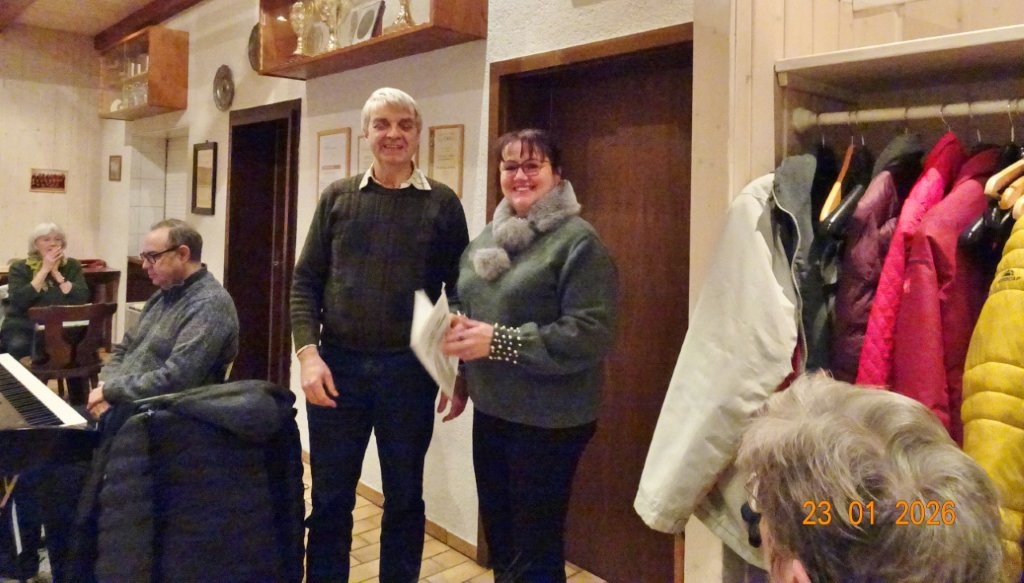 Vergangenen Sonntag fand unsere JHV im Erlich statt. Es standen schon Kaffee und eine leckere Kuchenauswahl bereit, vielen Dank an unsere Bäckerinnen und den fleißigen Sängerinnen, die frühzeitig im Erlich tätig waren. Die Versammlung lief nach der Tagesordnung ab und wurde, nach der Begrüßung durch unseren 1. Vorsitzenden Klaus Reinhardt, mit zwei Liedern unseres Chores unter dem Dirigat von Rolf Alber eröffnet. Es folgte die Berichterstattung, bei der uns Klaus Reinhardt einen kurzen Jahresüberblick verschaffte. Unsere Hauptkassiererin Jola Strzelecka berichtete über unsere Einnahmen und Ausgaben bei den verschiedenen Festen 2025 und den Einnahmen aus unserem Freitagsimbiss. Diese Aktivitäten wirkten sich positiv für unsere Finanzen aus. Hier auch ein großes Danke an unsere Kassiererin Jola, die hier Woche für Woche für gute Bilanzen sorgt! Nun folgte der Bericht der Pressevertreterin Doris Meder, die ausführlich über die Jahresveranstaltungen, die überwiegend im Zeichen des Gemeinde-Fusionsjahres standen, berichtete. Es war wohl ihr letzter Jahresbericht, da sie ihr Amt als Pressevertreterin nach 12 sehr kreativen Jahren aufgibt. Sie bedankte sich bei allen, die sie bei ihrer Arbeit unterstützt und ihr vertraut haben und auch für die gemeinsame Arbeit mit unserem Homepage-Administrator Rainer Ritz, der ihre Berichte wöchentlich auf die Homepage einstellte und Berichte und Bilder von Veranstaltungen auch dort archivierte. Auch er bedankte sich bei Doris für die immer zuverlässige und pünktliche Arbeit.