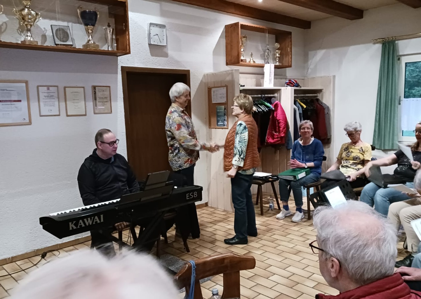 Viele richtig gesungene Noten sind noch kein perfektes Lied. Das mussten wir z.B. beim bekannten Ohrwurm „An jenem Tag“ - besser bekannt als „Those were the days“ - feststellen. Die richtige Betonung, die perfekte Lautstärke, das passende Tempo, die klare Aussprache, der emotionale Text, der ideale Rhythmus - das alles sollte eine Chorsängerin oder/und ein Chorsänger schon beachten, wenn Lieder ausdrucksvoll und optimal einem Publikum begeistert präsentiert werden. Und daher übten wir bei unseren Liedern am vergangenen Freitag genau diese vielen Ausdrucksformen, denn der nächste Auftritt steht an. Am kommenden Samstag sind wir zu Gast beim Sängerbund Friedrichstal in der Sängerhalle bei „Stage Fever- Klangdialog“ und da wollen wir uns in Top-Form präsentieren.