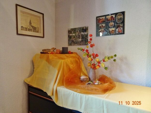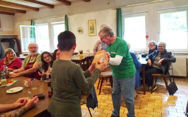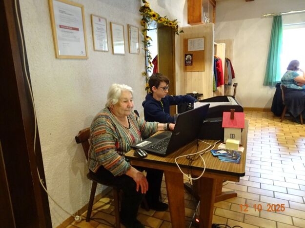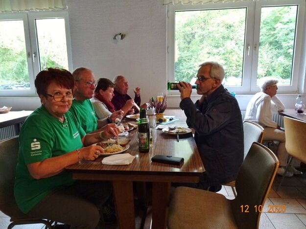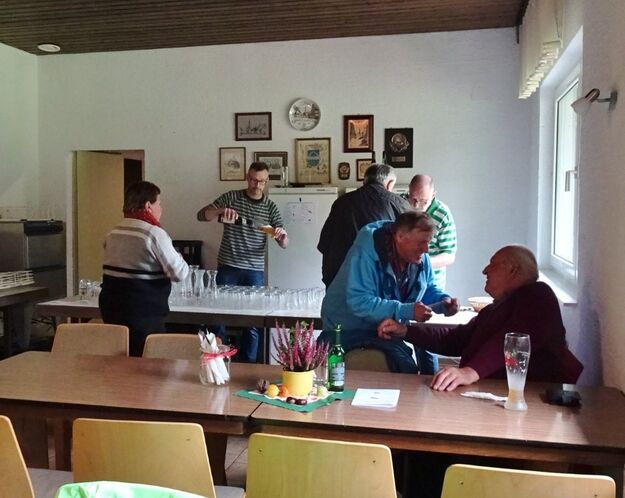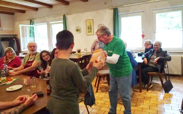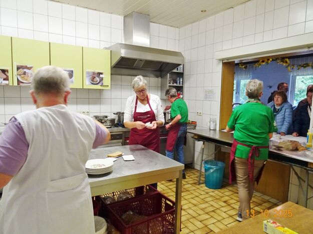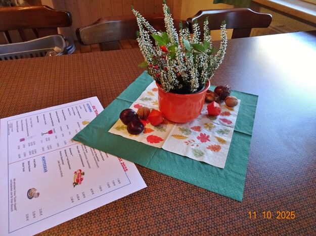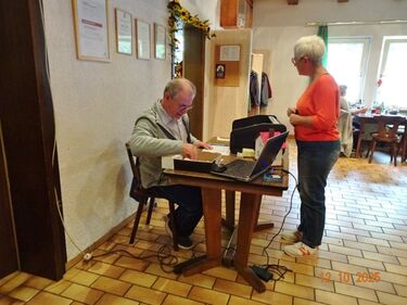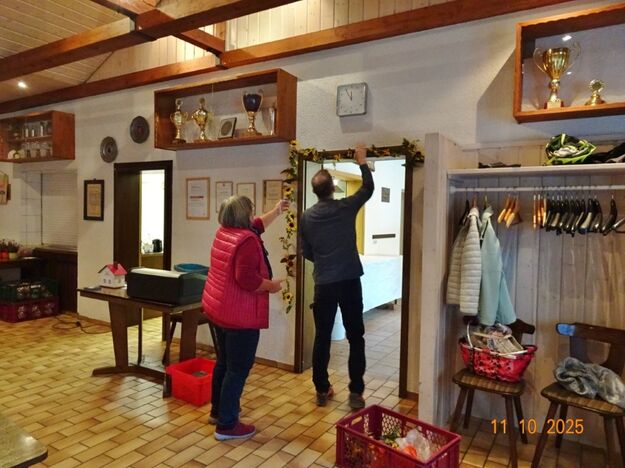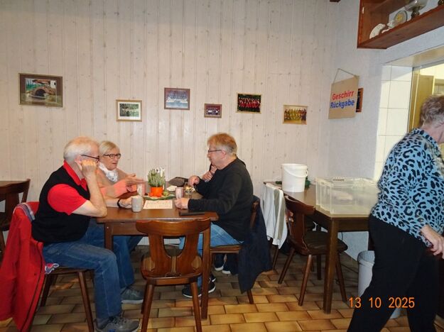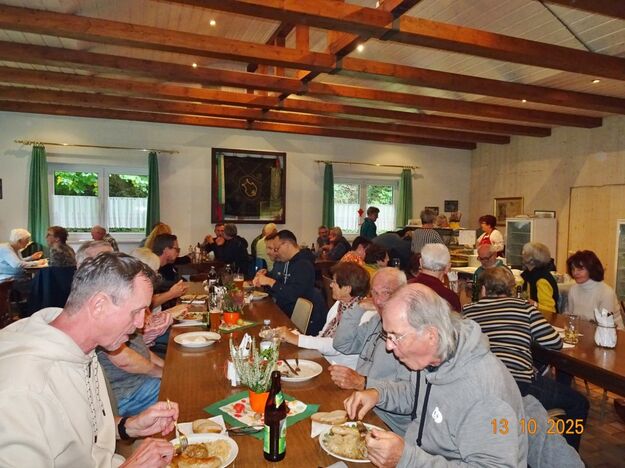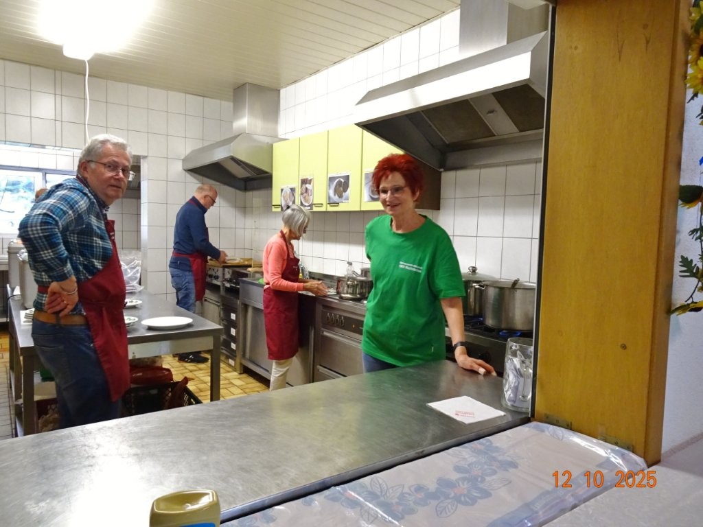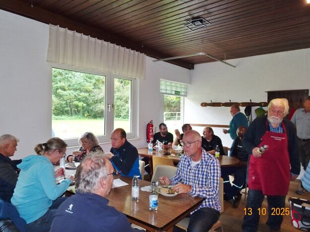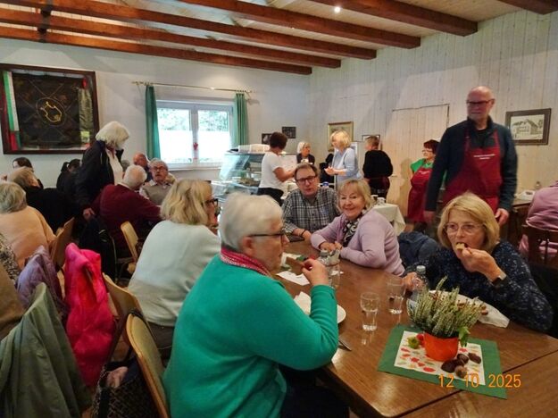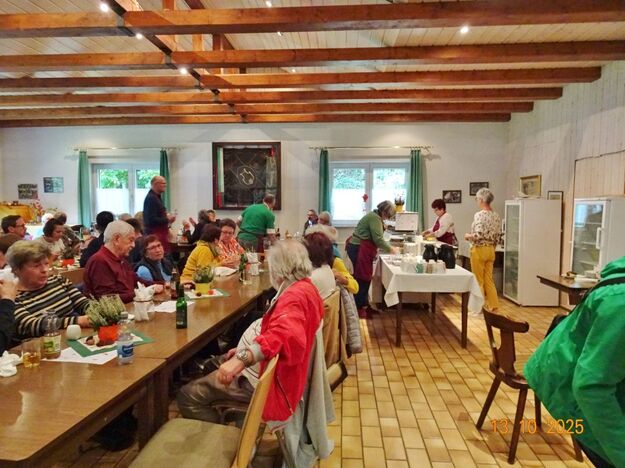 Samstags war ebenso eine Arbeitsgruppe im Einsatz, die das Vereinsheim für die Gäste herrichtete und mit herbstlicher Deko verschönte. In der Küche war Großeinsatz mit den Vorbereitungen für das leibliche Wohl der erwarteten Gäste. Die kamen dann auch am Sonntag so nach und nach in unser Vereinsheim und wie man hörte, hat das deftige Essen gemundet. Die verschiedenen Ressortleiter haben sich mit ihren Teams bewährt und die Gäste gut bewirtet. Auch die Kuchentheke war immer wieder belagert, denn dort lockten leckere Torten und Kuchen unsere Besucher an. Zur Unterhaltung gab´s Akkordeonmusik von Klaus Eichsteller.