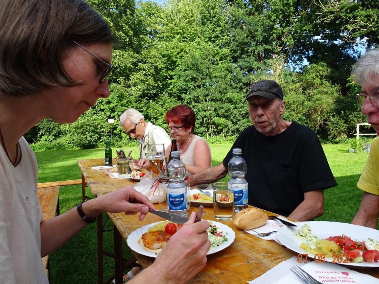 Auch in den Ferien gibt es Programm beim GV Einigkeit. Unser Greenkeeper Markus lud an zwei Abenden zum gemeinsamen Grillen ein. Der schön gemähte Rasen bot sich dafür an und schnell waren Garnituren aufgestellt und das Wetter passte beide Male. Jeder hatte sein Grillgut mitgebracht, um mit Markus seinen neuen Grill einzuweihen. Natürlich gab es auch leckere Beilagen, wobei das selbstgebackene Foccacia von Hannelore, die Kräuterbutter von Markus und der Avocado-Schafskäse-Dip von Jola die Renner waren. Wir saßen in gemütlicher Runde und angenehmer Unterhaltung beisammen. Danke an alle für diese gelungenen Abende. Bei schönem Wetter möchte Markus evtl. am 21.08. nochmal grillen, Nachricht kommt auf unserem Canale.