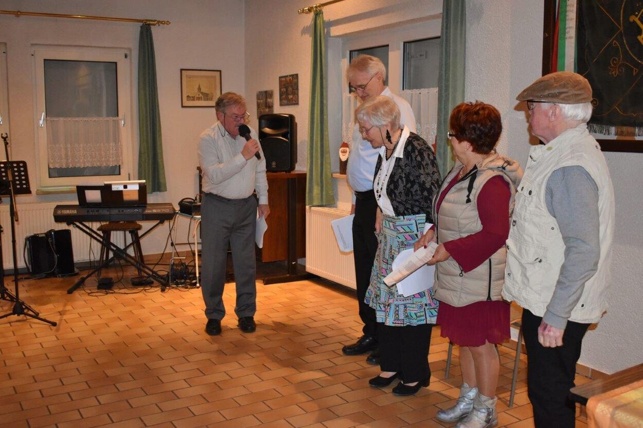 Endlich durften wir nach 3 Jahren wieder im Erlich zusammen kommen und mit Tannenbaum, Kerzenlichtern und festlicher Stimmung an den Tischen Platz nehmen. Unser Vorstand Klaus Reinhardt begrüßte alle Anwesenden und wünschte einen schönen Abend und den hatten wir. Zuerst sangen wir mit Aldo sechs Weihnachtslieder, eine gute Mischung und Rainer Ritz durfte beim „Weihnachtsgesang“ als Solist brillieren, gekonnt ist eben gekonnt! Dann konnte das von Vanny gelieferte warme Buffet eröffnet werden, das war auch gelungen, einschließlich der feinen Salate unserer Sängerinnen. Mit Getränken wurden wir auch versorgt, da waren unsere drei fleißigen Küchenfeen im Einsatz und wir konnten das leckere Essen entspannt genießen. Im Anschluss überreichte Klaus Reinhardt unserem Dirigenten Aldo Martinez eine Weihnachtstüte mit Dankesworten, über die sich Aldo sehr freute und sich bedankte. Leider musste er unsere Feier schon verlassen, da er noch eine andere familiäre Verpflichtung hatte. Nun übernahm unsere Sängerin Ute König das Zepter und führte uns mit sehr viel Gefühl durch das Programm. Heidi und Klaus Eichsteller eröffneten den Reigen mit einem musikalischen Beitrag, es folgte Christa Jung-Wittiger mit einer Weihnachtsgeschichte, wie eine köstlich gebratene Ente unerwartete Gaumenfreuden für Obdachlose unter einer Brücke bescherte. Klaus Reinhardt verlas auch eine in diese unruhige Zeit passende Geschichte, gefolgt von einem schönen Gedicht, das Hildegard Setzchen vorlas. Hannelore Dürr hatte eine rührende Geschichte über ein Enkelkind und eine verlorengegangene Masche in einem von ihm selbst gestrickten Schal, den die Oma bekommen sollte. Reinhilde Fürniß hatte ihre Gitarre dabei und sang uns das Lied „Joseph“ von Georges Moustaki – sehr gut, Reinhilde. Das Flötenspiel von Heidi Eichsteller beeindruckte auch, ebenso die Stücke, die uns Klaus Eichsteller auf seinem Keybord vorspielte. Nun war es Zeit für eine süße Pause! Unsere Helferinnen hatten emsig die Desserttafel gedeckt mit feinen Cremes, Obstsalat, Plätzchen, Orangenkuchen, ja sogar warmen Apfelstrudel mit Vanillesoße, frisch gebacken und serviert von unserem Koch Robert. Dankeschön, da gings uns doch wieder richtig gut!! Da konnten wir der „hinterlistigen Geschichte“ von Rainer Ritz gewappnet entgegensehen. Hartmut sang uns danach das Lied einer fränkischen Weihnacht mit einer knusprig gebratenen Weihnachtsgans, die sich wohl nicht rechtzeitig in Sicherheit gebracht hatte und sogar der Oma, püriert durch den Strohhalm gesogen, mundete. Super Hartmut! Nun folgte ein Sketch unter der Regie von Klaus Eichsteller mit einem ganz aktuellen Thema: Glasfaser und Hotline! Von den ewigen Warteschleifen bei Anruf der Hotlines kann doch bald jeder ein Lied singen. Das bekam auch die Familie Wockenberg zu spüren, authentisch gespielt von: Heidi Eichsteller und Robert Schnell und Tochter: Jola Strzlecka und Rainer Ritz, der den schlitzohrigen Opa mimte. Köstlich, was dieser Sprachcomputer am Telefon versteht und letztendlich nicht an den nächsten freien Mitarbeiter verbindet, sondern den Anrufer zur Verzweiflung und gar zur Aufgabe bringt. Tolle Vorführung, danke den Akteuren! Heidi und Klaus Eichsteller beendeten mit einer Musikeinlage das Abendprogramm, natürlich in französisch, Heidi´s Spezialität, très bon! Überhaupt an Heidi und Klaus ein riesiges Dankeschön, haben sie doch einen Großteil des Programms gestaltet. Auch allen anderen Mitwirkenden des Abends vielen Dank, unserer Ute, die uns gekonnt durchs Programm führte, dem Küchen-Service-Team, unserem Vorstand für den tollen Weihnachtsbaum und merci für all die leckeren Salate und Desserts – fein gemacht.