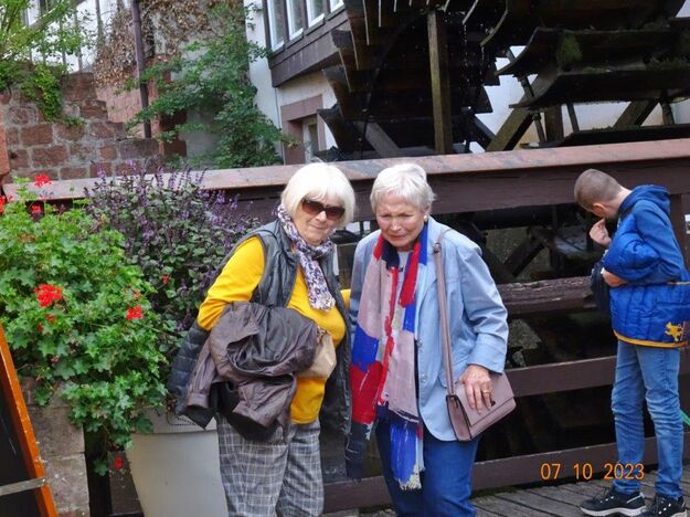 Zwischenzeitlich blinzelte die Sonne hervor und schenkte uns noch einen sonnigen Tag. Wir starteten mit einem geschichtsträchtigen Rundgang an der Queich und den Gerberhäusern entlang in die Stadt am Trifels. Ein liebevoll restaurierter Stadtkern begeisterte und wir konnten die Atmosphäre an der Wassergasse mit den Mühlrädern genießen und eine Vorstellung des hier ansässigen Gerberhandwerks bekommen. Wir waren bestens von unserem Commander K.E. auf Annweiler vorbereitet und tauchten in das Geschehen ein.