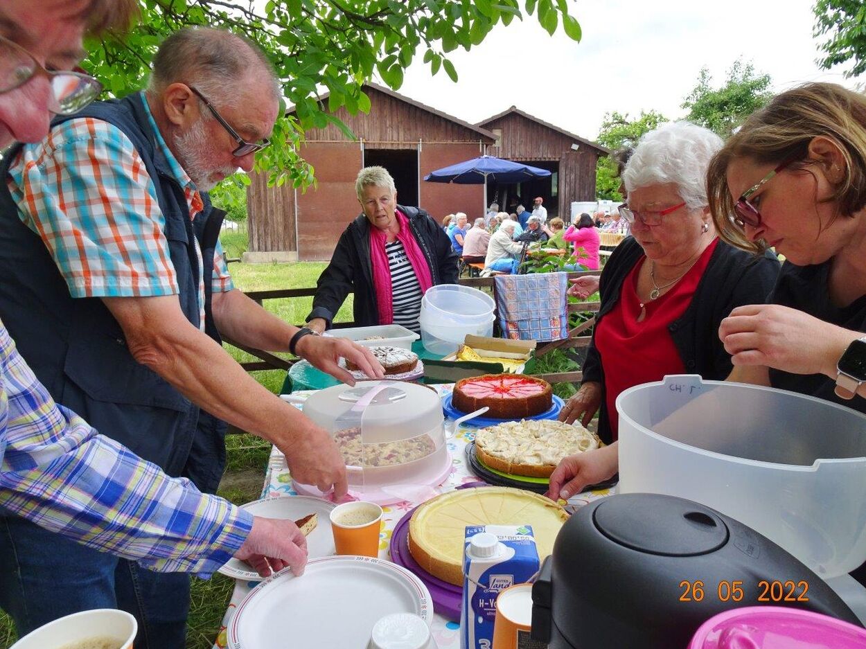 Am Vatertag nutzten einige Sängerinnen und Sänger das Angebot von Rainer und trafen sich vor dem Koppelfest zu einer kleinen Radtour, um pünktlich vor Ort einzutreffen. Dort waren die Vorbereitungen schon auf vollen Touren und mit fleißiger Unterstützung war alles optimal gerichtet. So konnten die eingeladenen Gäste auf einem wunderbaren Fleckchen Erde diesen Tag genießen. Der Wettergott spielte auch mit und bei angenehmen Temperaturen konnten wir es im Freien gut aushalten und der riesige Kirschbaum hielt schon süße Früchte zum Naschen parat. Christa und Manfred Lang hatten aus dankbarem Anlass diese Einladung ausgerichtet und wir danken der ganzen Familie Lang für die Gastfreundschaft und die supergute Verköstigung. Den Grillmeistern hier ein besonderes Lob und auch den Sängerinnen, die mit feinen Salaten und Kuchen das Buffet bereicherten. Auch unseren musikalisch Aktiven ein herzliches Danke!