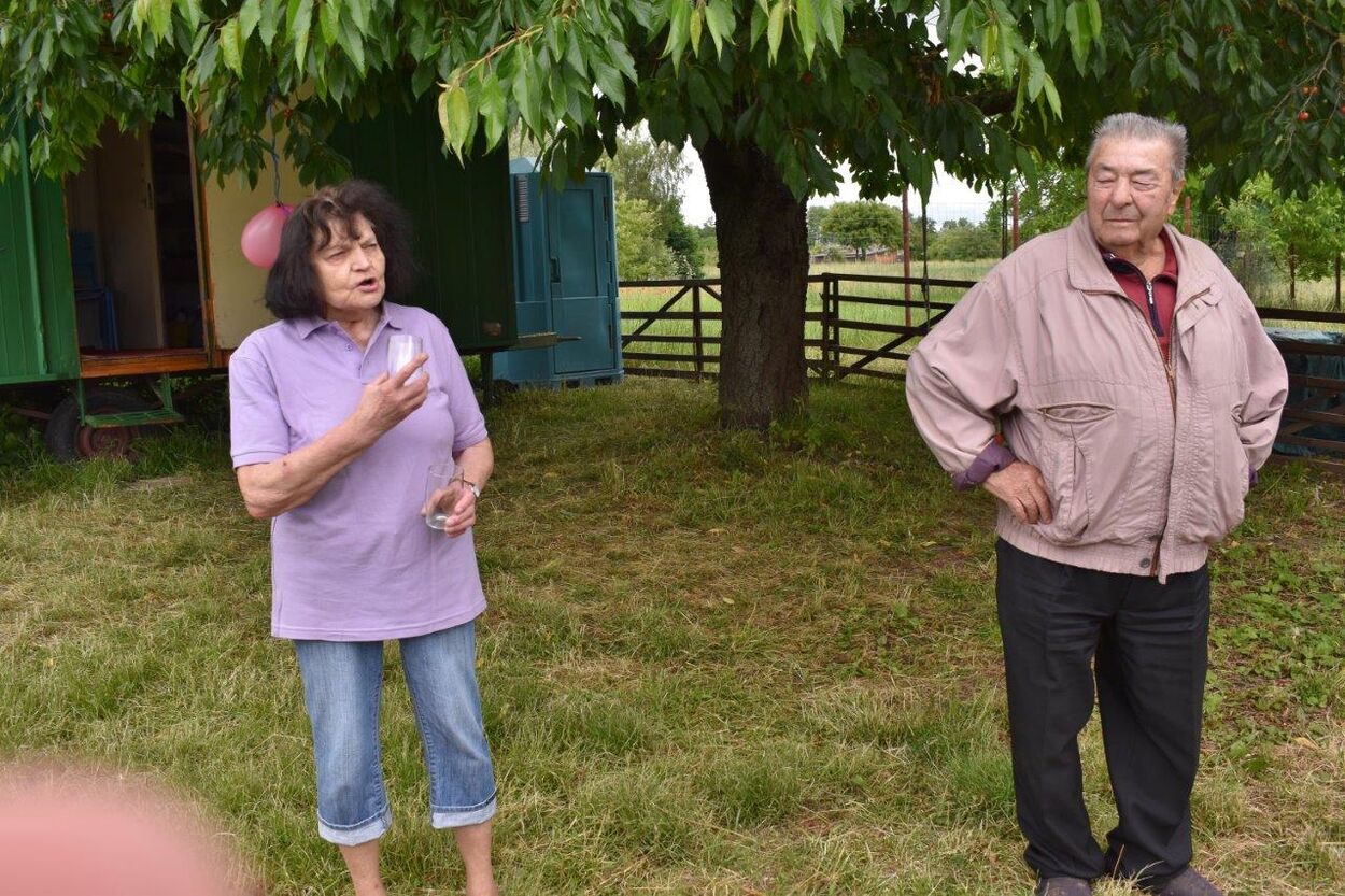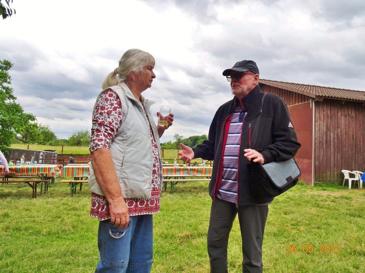 Klaus Eichsteller war mit seinem Akkordeon unermüdlich im Einsatz und Reinhilde Fürniß hatte ihre Gitarre und einige Lieder dabei, so konnten wir Manfred noch nachträglich zum 80. Geburtstag ein gebührendes Ständchen darbringen. Es ließ sich trefflich im Grünen sitzen und ab und an meldeten sich die Schafe mit Geblök, schließlich saßen wir ja auch auf deren Koppel. Auch ein herrlicher Tag geht einmal zu Ende und mit vereinten Kräften wurde zusammen geräumt – herzlichen Dank an alle Beteiligten und vor allem an unsere Gastgeber.