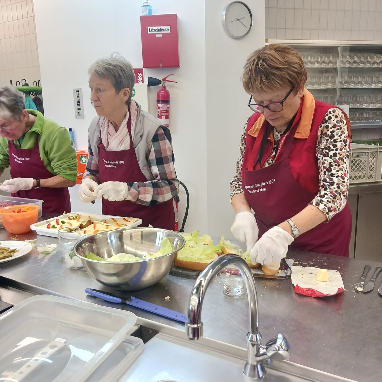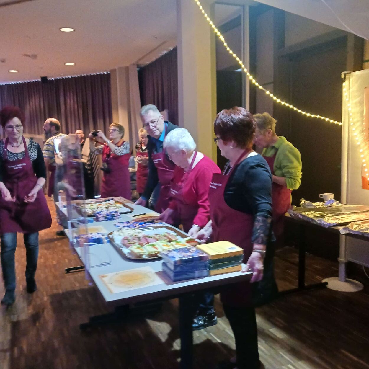 Im Vorfeld wurde fleißig geprobt, auch für ein gemeinsames Lied mit unserem Bruderverein GV-Sängerbund Linkenheim - der Miteinandertag konnte kommen. Die teilnehmenden Vereine hatten sich ins Zeug gelegt, um ein schönes Event zu bieten, voran der GV Sängerbund, der zum Miteinander geladen hatte. Freitags und samstags wurde im Bürgerhaus fleißig gewerkelt, um alles einladend zu richten. Samstags füllte sich die Kuchentheke mit leckeren Kuchen und Torten und in der Küche wurden Brötchen und Wurstsalat gerichtet, um für das leibliche Wohl der Anwesenden zu sorgen. Ab 15.00 Uhr bot die KuGel ein Programm für Kids und ab 15.30 Uhr war dann der Grundschulchor Hochstetten mit seiner Chorleiterin Frau Bamberger auf der Bühne. Sie verstand es meisterhaft, die 60 Kinder bei den Liedvorträgen zu führen und deren Begeisterung war förmlich zu spüren – bravo! Gegen 18.00 Uhr waren dann unsere zwei Vereine mit insgesamt vier Chören zu hören. Der Frauenchor des Sängerbund startete, gefolgt vom Männerchor, die sich mit modernen, überwiegend englischen Songs bestens präsentierten. Danach folgte unser Chor mit Grönemeyers „Mambo“, „Ein Lied kann eine Brücke sein“ und dann das Fusionslied zu unserem Gemeinde-Jubiläum mit dem eigens umgedichteten Text von „Solang man Träume noch leben kann“. Der Neutralität halber hat hier unser Grabener Sänger Klaus Eichsteller gedichtet – vielen Dank Klaus!