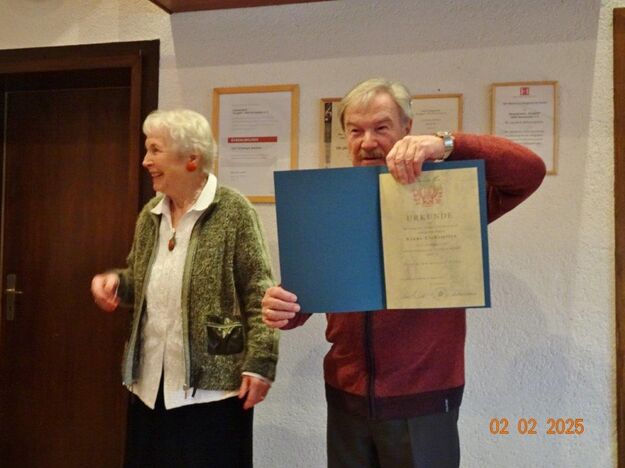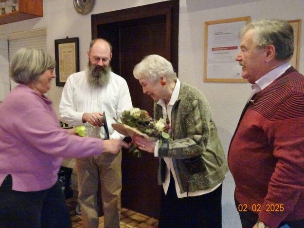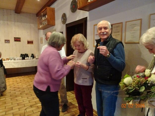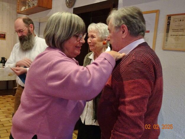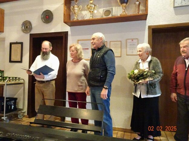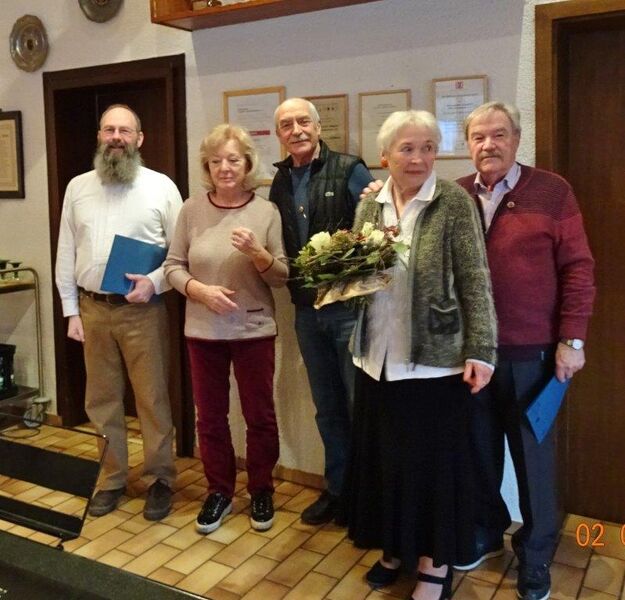 Horst Steiner wurde für 40 Jahre Mitgliedschaft zum Ehrenmitglied ernannt, die Auszeichnung wird unser Vorstand noch nachträglich vornehmen. Ute König hatte Markus unterstützt und den Geehrten die Ehrennadeln angesteckt und auch Heidi einen schönen Blumenstrauß überreicht. Dankeschön Ute, auch fürs Besorgen.