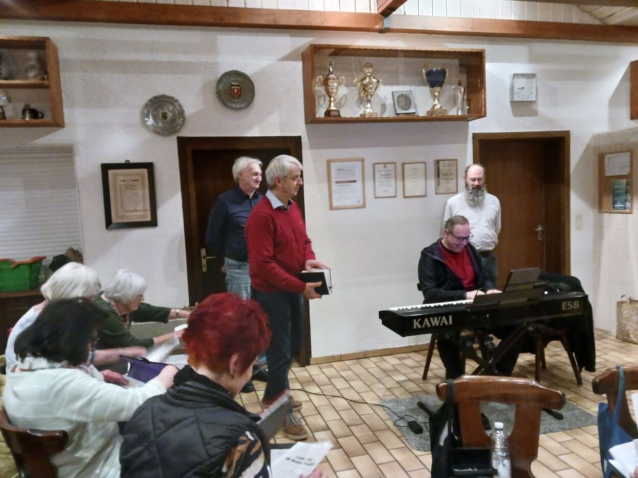 Am Freitag war dann aber wieder gemeinsames Singen angesagt, und nach der Osterpause fanden sich auch sehr viele hochmotiviert wieder ein. Schließlich sind wir in gut zwei Wochen zu Gast beim Sängerbund Friedrichstal und wollen uns hier in Bestform präsentieren.