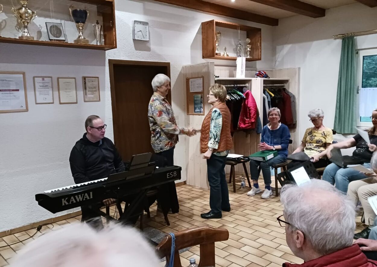 Viele richtig gesungene Noten sind noch kein perfektes Lied. Das mussten wir z.B. beim bekannten Ohrwurm „An jenem Tag“ - besser bekannt als „Those were the days“ - feststellen. Die richtige Betonung, die perfekte Lautstärke, das passende Tempo, die klare Aussprache, der emotionale Text, der ideale Rhythmus - das alles sollte eine Chorsängerin oder/und ein Chorsänger schon beachten, wenn Lieder ausdrucksvoll und optimal einem Publikum begeistert präsentiert werden. Und daher übten wir bei unseren Liedern am vergangenen Freitag genau diese vielen Ausdrucksformen, denn der nächste Auftritt steht an. Am kommenden Samstag sind wir zu Gast beim Sängerbund Friedrichstal in der Sängerhalle bei „Stage Fever- Klangdialog“ und da wollen wir uns in Top-Form präsentieren.