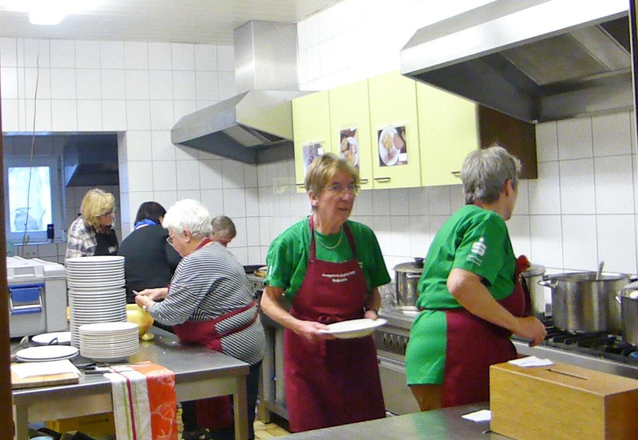 Samstags ab 9.30 Uhr fanden sich fleißige Helferinnen und Helfer im Vereinsheim im Erlich ein, um Vorbereitungen für das Schlachtfest zu treffen. Das Mobiliar wurde aufgestellt, inklusive der Kuchentheke und Vorkehrungen in der Küche getroffen. Unsere Rosi hatte ihren Garten geplündert und Ute`s Blumenschmuck ergänzt, so konnte es an die Tischdeko gehen, dazu passten auch wieder gut Kastanien. Die Kühlschränke wurden mit Getränken gefüllt, denn auch da wollten wir den Pfälzern nicht nachstehen. Sonntags ging es früh in der Küche los, um rechtzeitig alles für die Besucher gerichtet zu haben. Würden sie trotz Kirwe kommen? Ja, sie kamen, wir waren überwältigt. Die Sonne zeigte sich und wir konnten sogar draußen einige Biergarnituren aufstellen, die ruckzuck belegt waren. Das deftige Essen war begehrt und hat rundum geschmeckt und auch die Kuchentheke war immer wieder belagert. Wir danken all unseren Besuchern, schön, dass Ihr da wart und allen, die am Sonntag im Einsatz waren, Ihr wart großartig!!
