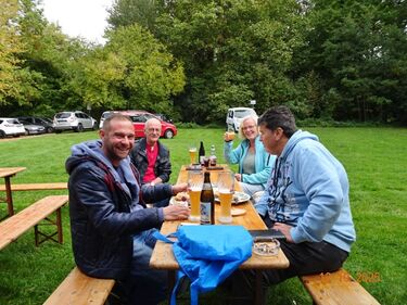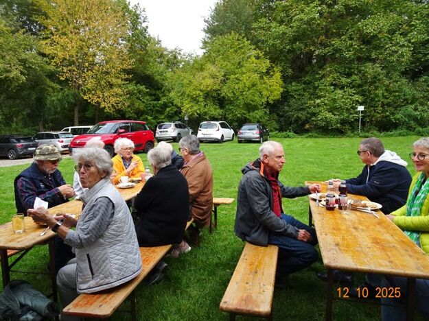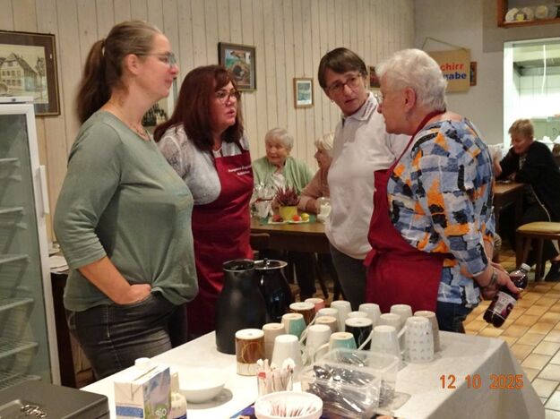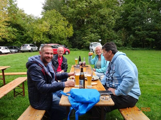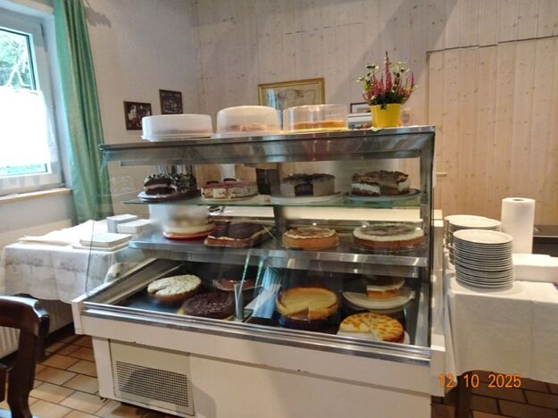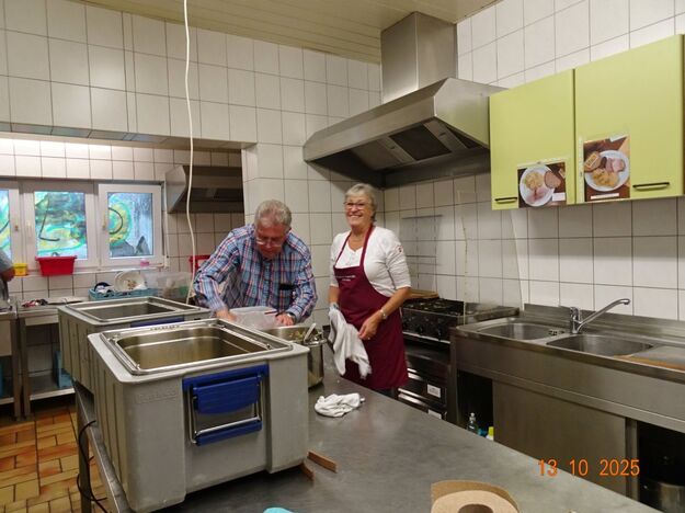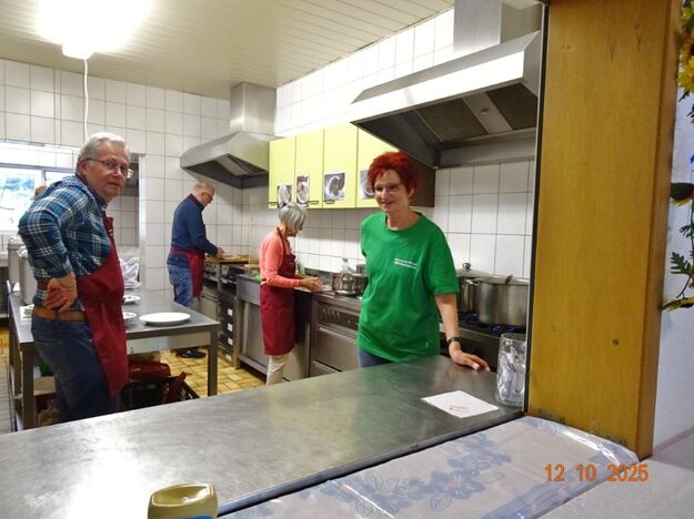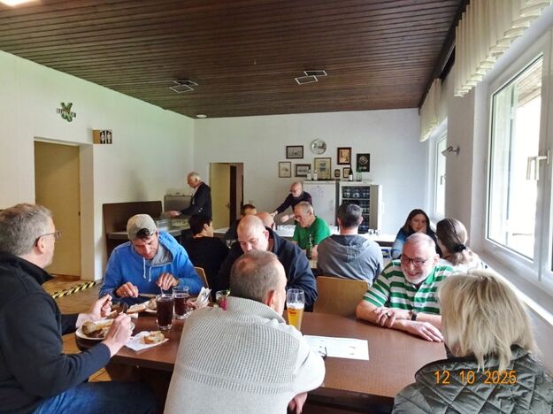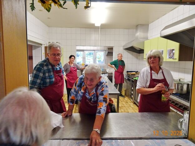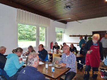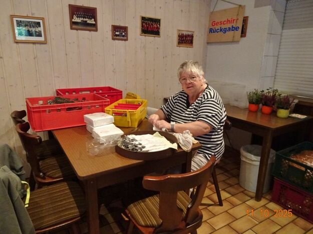 Samstags war ebenso eine Arbeitsgruppe im Einsatz, die das Vereinsheim für die Gäste herrichtete und mit herbstlicher Deko verschönte. In der Küche war Großeinsatz mit den Vorbereitungen für das leibliche Wohl der erwarteten Gäste. Die kamen dann auch am Sonntag so nach und nach in unser Vereinsheim und wie man hörte, hat das deftige Essen gemundet. Die verschiedenen Ressortleiter haben sich mit ihren Teams bewährt und die Gäste gut bewirtet. Auch die Kuchentheke war immer wieder belagert, denn dort lockten leckere Torten und Kuchen unsere Besucher an. Zur Unterhaltung gab´s Akkordeonmusik von Klaus Eichsteller.