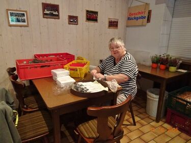Montags kamen schon frühzeitig die ersten Gäste in den Erlich um hier ihren Kaffee zu trinken, oder warteten schon bei einem kleinen Plausch aufs Mittagessen. Ortsansässige Firmen ließen sich in ihrer Mittagspause Schlachtplatte, Kesselfleisch, Leberknödel & Co. schmecken und vielleicht noch ein Käffchen und Kuchen zum Abschluss. Man konnte sich wohlfühlen im Erlich, also Termin vormerken für nächstes Jahr. Wir danken all unseren Gästen, die sich im Vereinsheim einfanden, all unseren Helferinnen und Helfern, die wieder so tolle Arbeit geleistet haben, ob bei den Planungen im Vorfeld, den Einkäufen, den Außenarbeiten, beim Küchendienst, bei den Getränken, an der Kasse, der Kuchentheke, Geschirr-Rückgabe und natürlich dem Putz-Team am Ende des Schlachtfestes, rundum allen, die zum Gelingen unseres Schlachtfestes beigetragen haben – Ihr ward Spitze!!