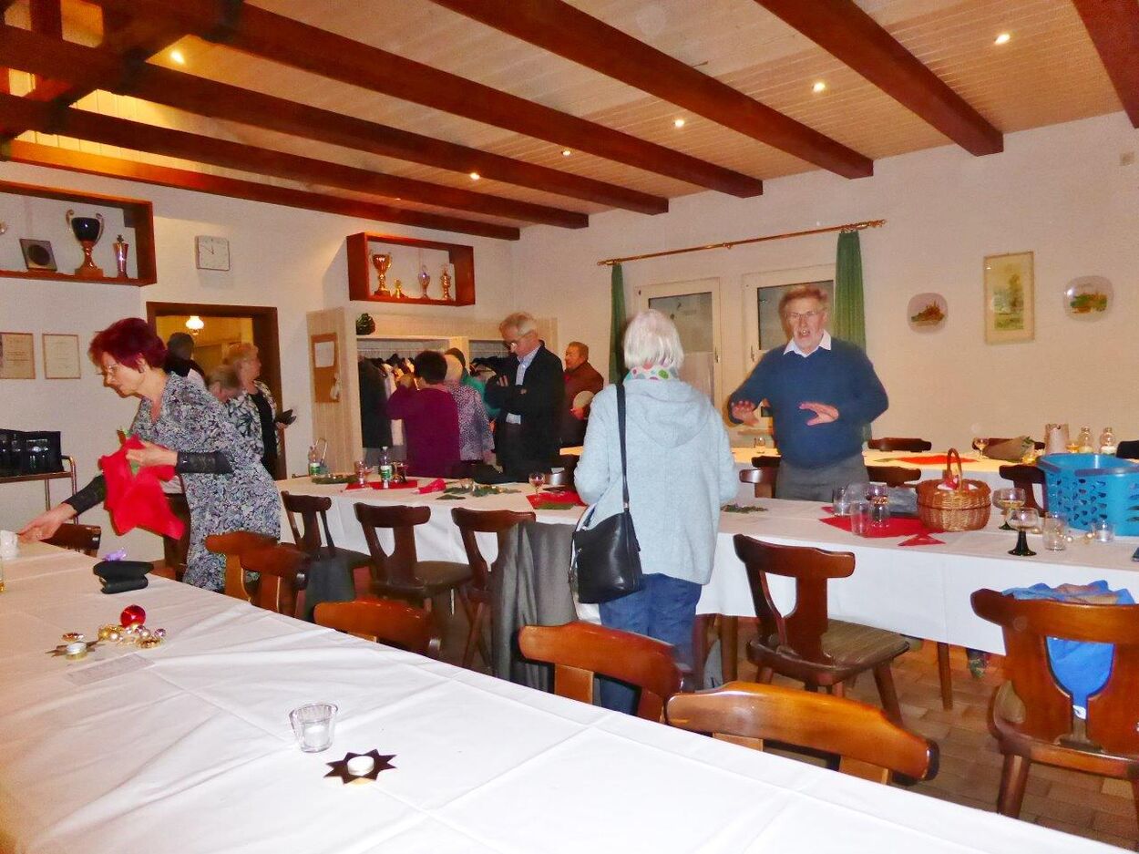 Endlich durften wir nach 3 Jahren wieder im Erlich zusammen kommen und mit Tannenbaum, Kerzenlichtern und festlicher Stimmung an den Tischen Platz nehmen. Unser Vorstand Klaus Reinhardt begrüßte alle Anwesenden und wünschte einen schönen Abend und den hatten wir. Zuerst sangen wir mit Aldo sechs Weihnachtslieder, eine gute Mischung und Rainer Ritz durfte beim „Weihnachtsgesang“ als Solist brillieren, gekonnt ist eben gekonnt! Dann konnte das von Vanny gelieferte warme Buffet eröffnet werden, das war auch gelungen, einschließlich der feinen Salate unserer Sängerinnen. Mit Getränken wurden wir auch versorgt, da waren unsere drei fleißigen Küchenfeen im Einsatz und wir konnten das leckere Essen entspannt genießen. Im Anschluss überreichte Klaus Reinhardt unserem Dirigenten Aldo Martinez eine Weihnachtstüte mit Dankesworten, über die sich Aldo sehr freute und sich bedankte. Leider musste er unsere Feier schon verlassen, da er noch eine andere familiäre Verpflichtung hatte. Nun übernahm unsere Sängerin Ute König das Zepter und führte uns mit sehr viel Gefühl durch das Programm. Heidi und Klaus Eichsteller eröffneten den Reigen mit einem musikalischen Beitrag, es folgte Christa Jung-Wittiger mit einer Weihnachtsgeschichte, wie eine köstlich gebratene Ente unerwartete Gaumenfreuden für Obdachlose unter einer Brücke bescherte. Klaus Reinhardt verlas auch eine in diese unruhige Zeit passende Geschichte, gefolgt von einem schönen Gedicht, das Hildegard Setzchen vorlas. Hannelore Dürr hatte eine rührende Geschichte über ein Enkelkind und eine verlorengegangene Masche in einem von ihm selbst gestrickten Schal, den die Oma bekommen sollte. Reinhilde Fürniß hatte ihre Gitarre dabei und sang uns das Lied „Joseph“ von Georges Moustaki – sehr gut, Reinhilde. Das Flötenspiel von Heidi Eichsteller beeindruckte auch, ebenso die Stücke, die uns Klaus Eichsteller auf seinem Keybord vorspielte. Nun war es Zeit für eine süße Pause! Unsere Helferinnen hatten emsig die Desserttafel gedeckt mit feinen Cremes, Obstsalat, Plätzchen, Orangenkuchen, ja sogar warmen Apfelstrudel mit Vanillesoße, frisch gebacken und serviert von unserem Koch Robert. Dankeschön, da gings uns doch wieder richtig gut!! Da konnten wir der „hinterlistigen Geschichte“ von Rainer Ritz gewappnet entgegensehen. Hartmut sang uns danach das Lied einer fränkischen Weihnacht mit einer knusprig gebratenen Weihnachtsgans, die sich wohl nicht rechtzeitig in Sicherheit gebracht hatte und sogar der Oma, püriert durch den Strohhalm gesogen, mundete. Super Hartmut! Nun folgte ein Sketch unter der Regie von Klaus Eichsteller mit einem ganz aktuellen Thema: Glasfaser und Hotline! Von den ewigen Warteschleifen bei Anruf der Hotlines kann doch bald jeder ein Lied singen. Das bekam auch die Familie Wockenberg zu spüren, authentisch gespielt von: Heidi Eichsteller und Robert Schnell und Tochter: Jola Strzlecka und Rainer Ritz, der den schlitzohrigen Opa mimte. Köstlich, was dieser Sprachcomputer am Telefon versteht und letztendlich nicht an den nächsten freien Mitarbeiter verbindet, sondern den Anrufer zur Verzweiflung und gar zur Aufgabe bringt. Tolle Vorführung, danke den Akteuren! Heidi und Klaus Eichsteller beendeten mit einer Musikeinlage das Abendprogramm, natürlich in französisch, Heidi´s Spezialität, très bon! Überhaupt an Heidi und Klaus ein riesiges Dankeschön, haben sie doch einen Großteil des Programms gestaltet. Auch allen anderen Mitwirkenden des Abends vielen Dank, unserer Ute, die uns gekonnt durchs Programm führte, dem Küchen-Service-Team, unserem Vorstand für den tollen Weihnachtsbaum und merci für all die leckeren Salate und Desserts – fein gemacht.